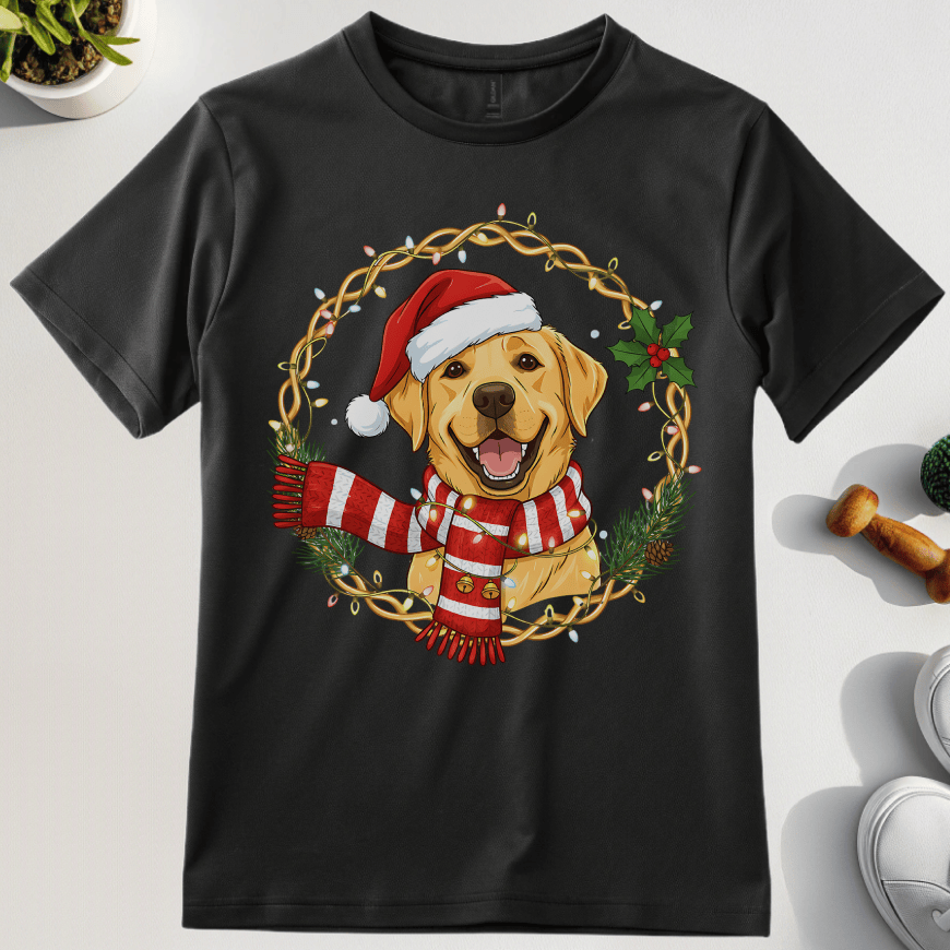 Santa Lab T-Shirt — A festive, playful tee featuring your Labrador in holiday spirit, perfect for spreading Christmas cheer.